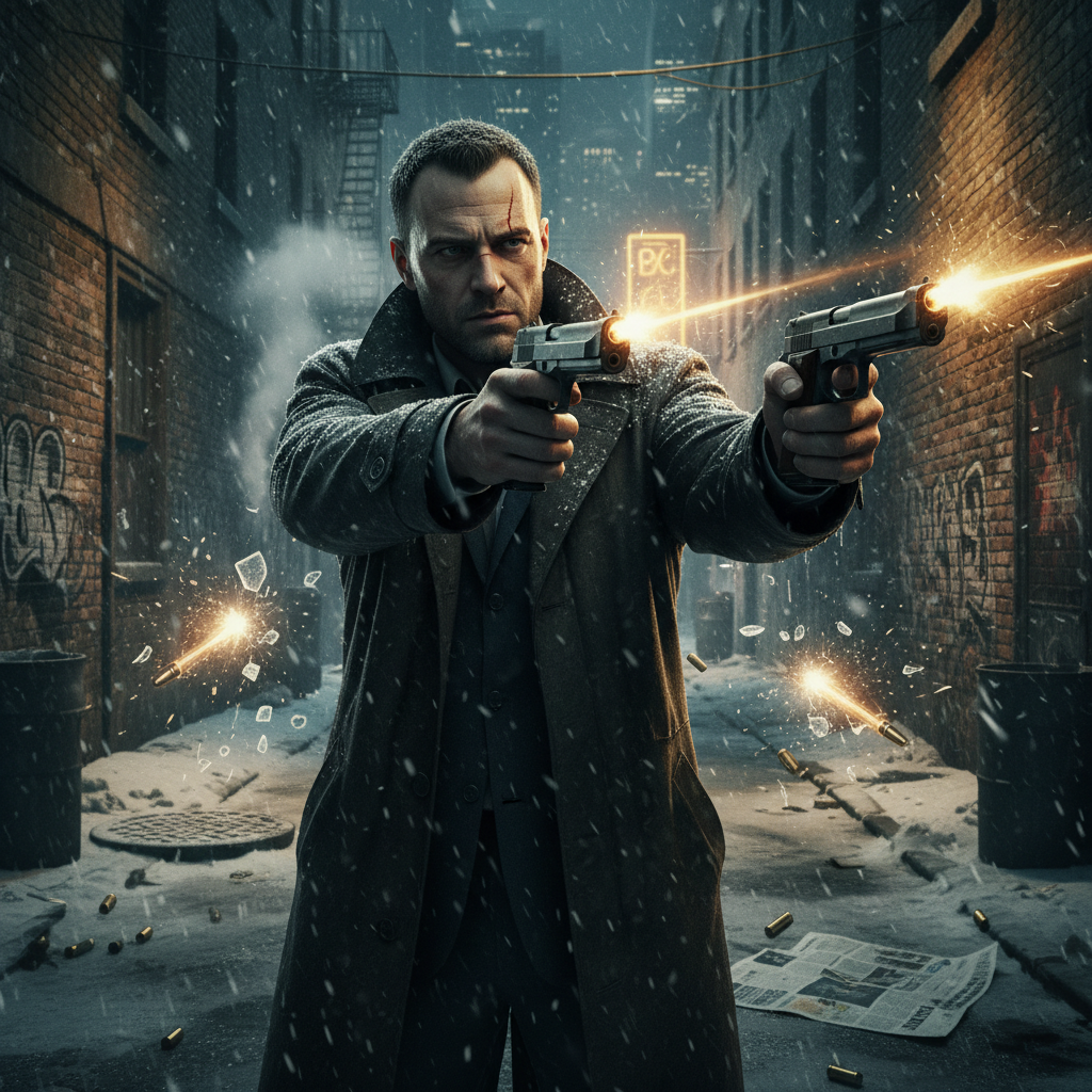 - Inspiração Neo-Noir: Max Payne bebeu profundamente da fonte dos filmes neo-noir, com sua estética sombria, protagonista atormentado e narrativa de vingança. Essa inspiração foi tão bem executada que o jogo se tornou um modelo para futuros títulos que buscaram emular um clima similar.