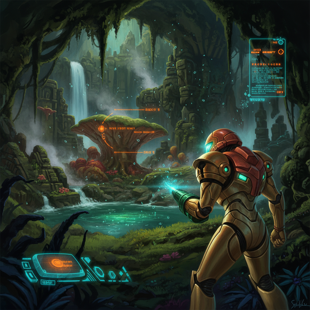 • O Papel do Scan Visor: A mecânica do Scan Visor não foi apenas uma adição de gameplay; ela foi essencial para integrar a vasta lore de Metroid no novo formato 3D. Permitir que o jogador descobrisse informações sobre criaturas, artefatos e ambientes sem interrupções de cutscenes aprofundou a imersão e a narrativa.