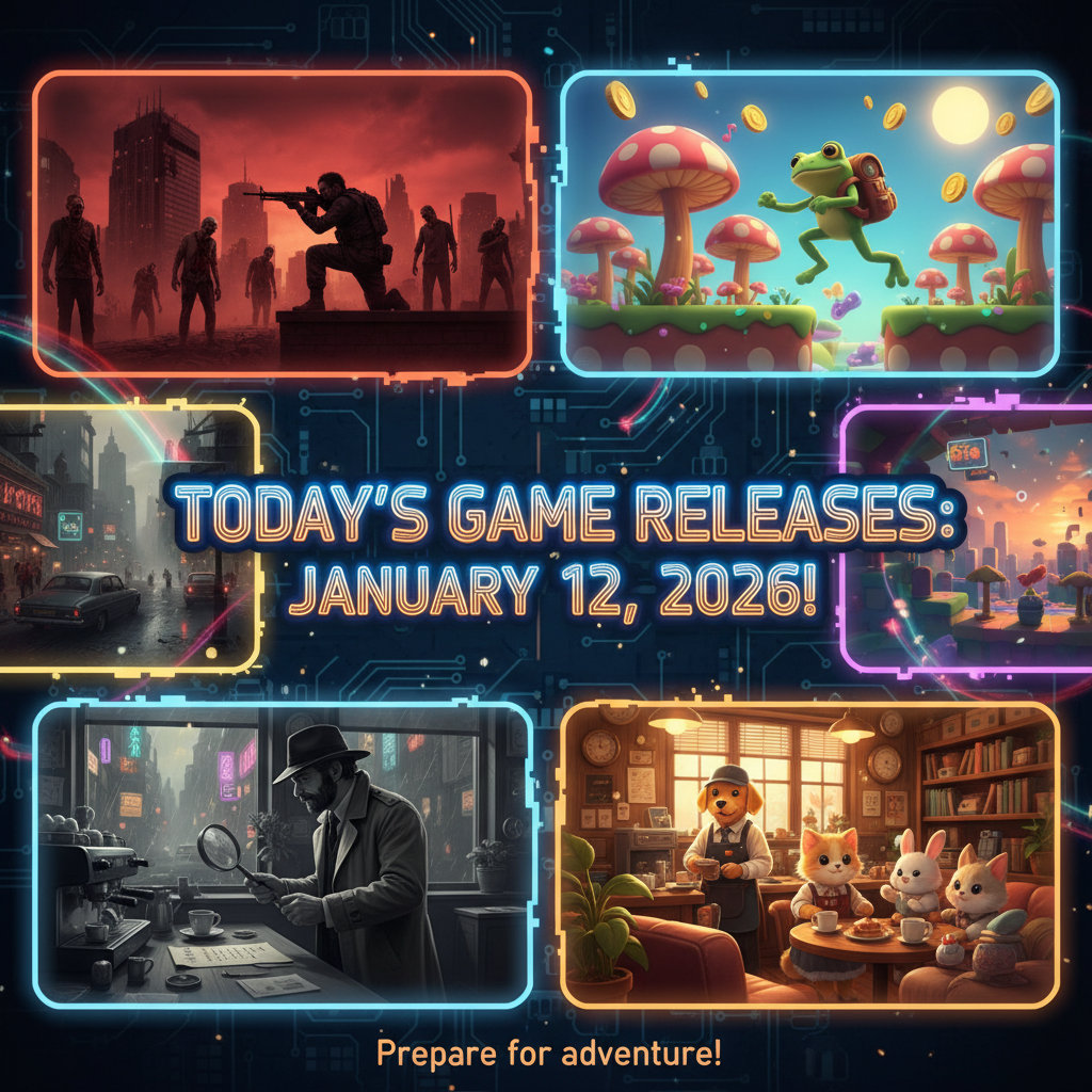 Hoje, 12 de janeiro de 2026, é um dia com novidades para os jogadores de PC e consoles. A lista de lançamentos de hoje inclui desde um simulador de gerenciamento em um apocalipse zumbi até um relaxante jogo de gerenciamento de café, passando por um jogo de plataforma 3D e uma aventura de detetive. Confira abaixo os detalhes de cada um dos novos games.