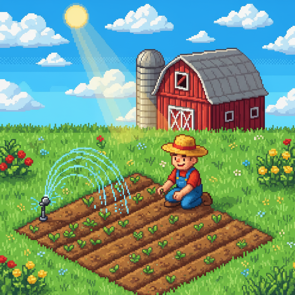 - Invista em Irrigadores (Sprinklers): Assim que puder, crie ou compre irrigadores. Eles economizam um tempo valioso que você gastaria regando, permitindo que você se dedique a outras atividades mais lucrativas como mineração ou pesca.